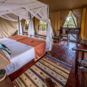 Ashnil Mara Camp sits along the Mara River, often giving guests a front-row seat to wildlife crossings. The camp offers modern luxury tents with en-suite bathrooms, hot showers, and elegant décor.