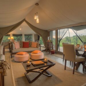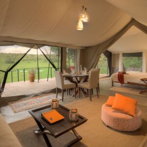Kicheche Bush Camp sits on the edge of the iconic Maasai Mara, nestled in a lush forest on the meandering bends of the Ntiakitiak River. This luxury safari camp in Kenya offers guests rare access to both the private Olare Motorogi Conservancy and the Masai Mara National Reserve. Exquisite design meets unmatched big cat viewing, with just seven canvas suites suspended on wooden decks above the savannah. This camp is a haven for photographers, adventurers, and those seeking the epitome of Kenya luxury safaris.