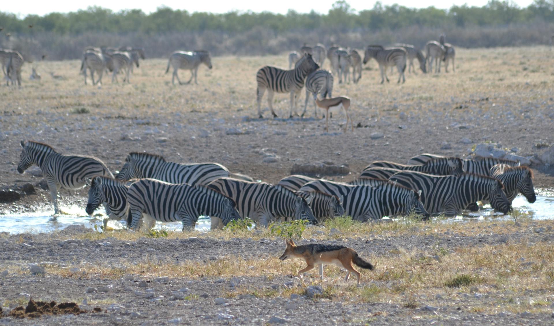 Yellow baboons are common along the lake shore, often seen foraging in large troops. Olive baboons inhabit the higher forests. Vervet monkeys move through the woodland edges. At night, bushbabies and pottos emerge, their large eyes reflecting in torchlight .