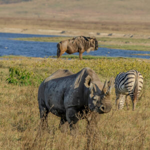 The Ngorongoro Crater is one of the best places in Africa to see black rhinos in the wild. Unlike the more numerous white rhinos, black rhinos are solitary, elusive, and critically endangered. The crater’s enclosed environment provides a protected sanctuary where a healthy population thrives .