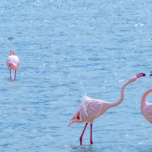 Lake Magadi is a shallow soda lake on the crater floor that attracts thousands of flamingos, along with a variety of other waterbirds . Depending on water levels, the lake can be tinged pink with flamingos—a spectacular sight against the crater’s green walls .